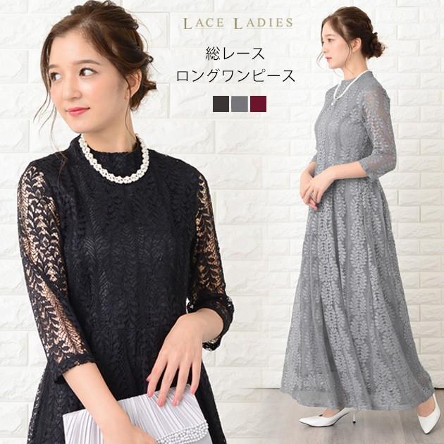 ハイネック パーティードレス 総レース ワンピース ロングワンピース 七分袖 ブラック グレー ワインレッド ロング丈 レディース 袖付き Szp78 レースレディース 通販 Yahoo ショッピング